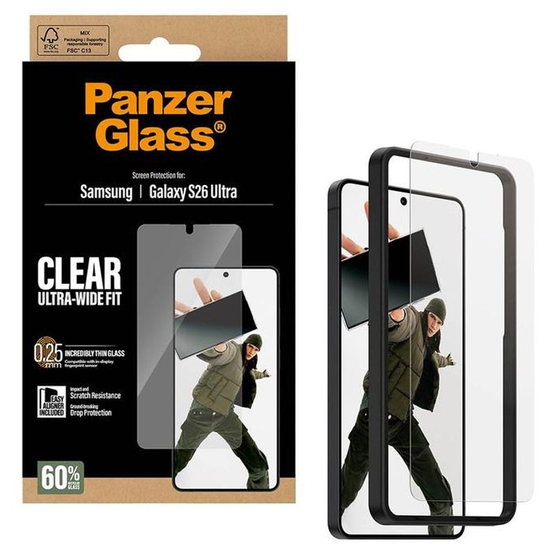 The PanzerGlass Ultra-Wide Fit screen protector with EasyAligner is the ultimate defense for your Samsung Galaxy S26 Ultra against everyday damage. Don't let accidental bumps or crushing falls ruin your device. With this scratch and shock-resistant screen protector, you can enjoy high-level drop protection and keep your phone looking pristine. Also, thanks to the included EasyAligner tool, the installation has never been easier.