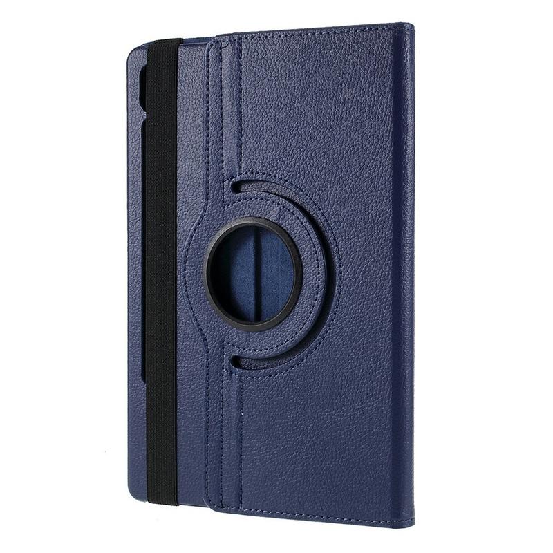 Protect and enhance your Samsung Galaxy Tab S10 FE+ with this slim rotating-stand case. A tough PC shell teams with a soft, lychee-texture PU leather exterior to shield your Samsung Galaxy Tab S10 FE+ from bumps and scratches, while the 360 swivel lets you switch effortlessly between portrait e-reading and landscape streaming. A soft inner lining guards the display, and an elastic band keeps the cover securely closed in your bag.