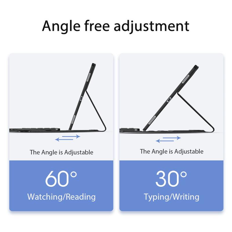 - Adjustable Stand Function – Integrated foldable stand allows you to position your tablet at the perfect viewing angle for typing or watching content.
