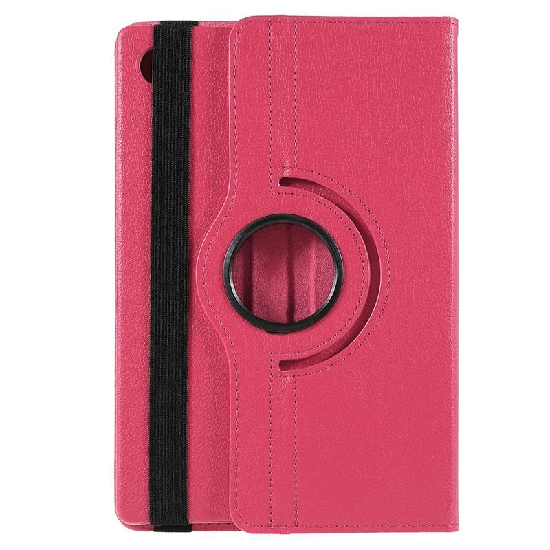 Protect and enhance your Samsung Galaxy Tab A11+ with this slim rotating-stand case. A tough PC shell teams with a soft, lychee-texture PU leather exterior to shield your Samsung Galaxy Tab A11+ from bumps and scratches, while the 360 swivel lets you switch effortlessly between portrait e-reading and landscape streaming. A soft inner lining guards the display, and an elastic band keeps the cover securely closed in your bag.