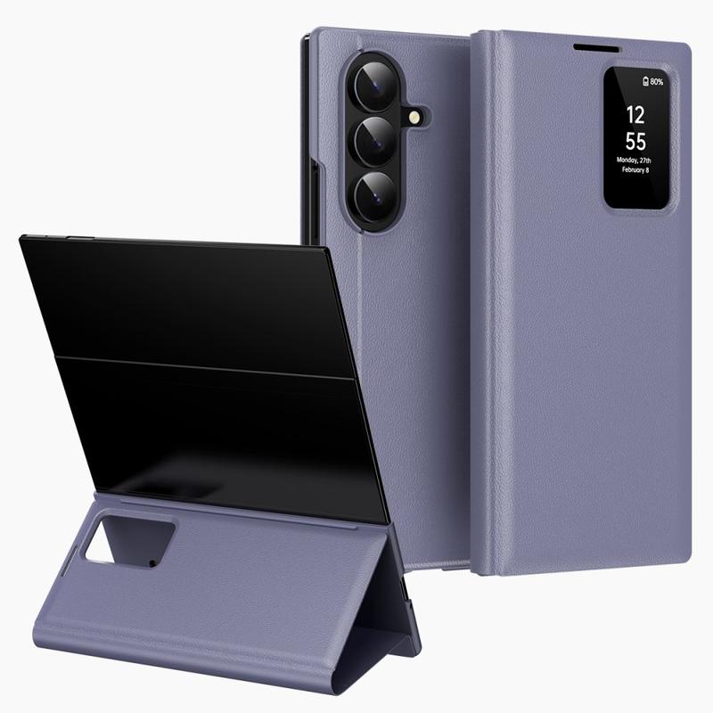 Samsung Galaxy Z TriFold Smart Clear View Flip Case with Card Slot - Grey Purple