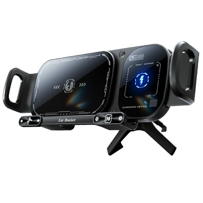 Experience a smarter and safer drive with the SD01 wireless charger phone holder, a next-generation car mount designed for fast wireless charging, hands-free navigation, and ultimate convenience. Its dual-coil system, automatic 90° rotation, and super capacitor technology ensure reliable performance for both foldable and standard smartphones.