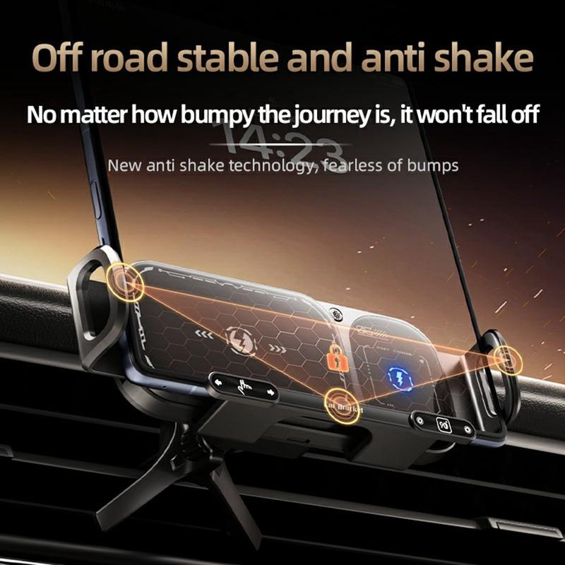 The built-in super capacitor in this charger stores enough energy to operate the motorized clamp even after power is cut — a feature typically found in premium automotive mounts, ensuring you can safely remove your phone even when the engine is off.