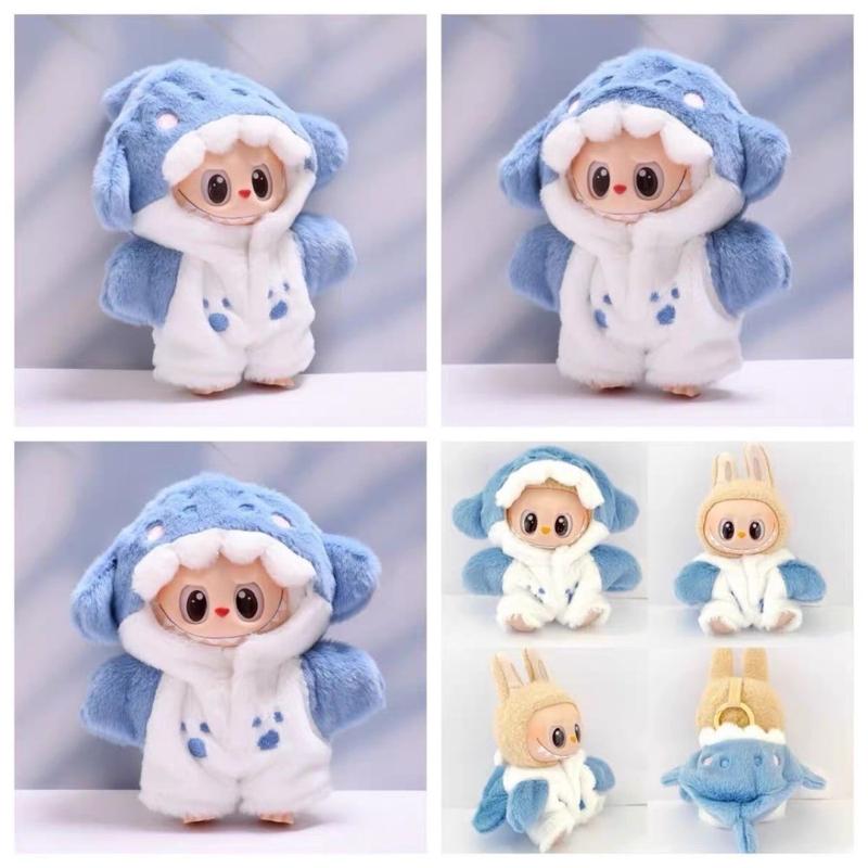 Shark Hooded Jumpsuit for Labubu Doll 17cm – Cute Plush Pajamas Costume for Mini Figurine