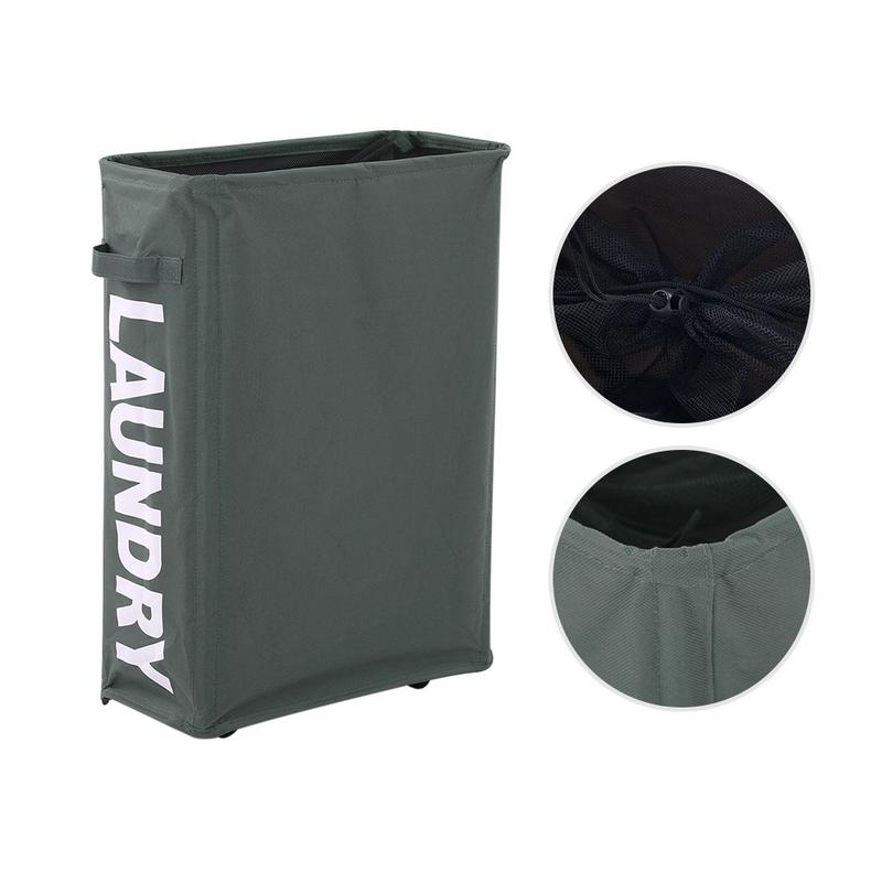 Slim Foldable Oxford Laundry Basket with Wheels & Mesh Drawstring Lid - Corner Dirty Clothes Hamper