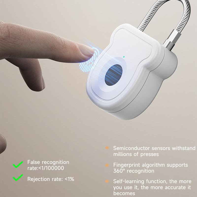 This smart padlock uses a semiconductor fingerprint sensor capable of storing up to 20 fingerprints. The self-learning algorithm improves accuracy over time, ensuring quicker and more reliable unlocking with each use.