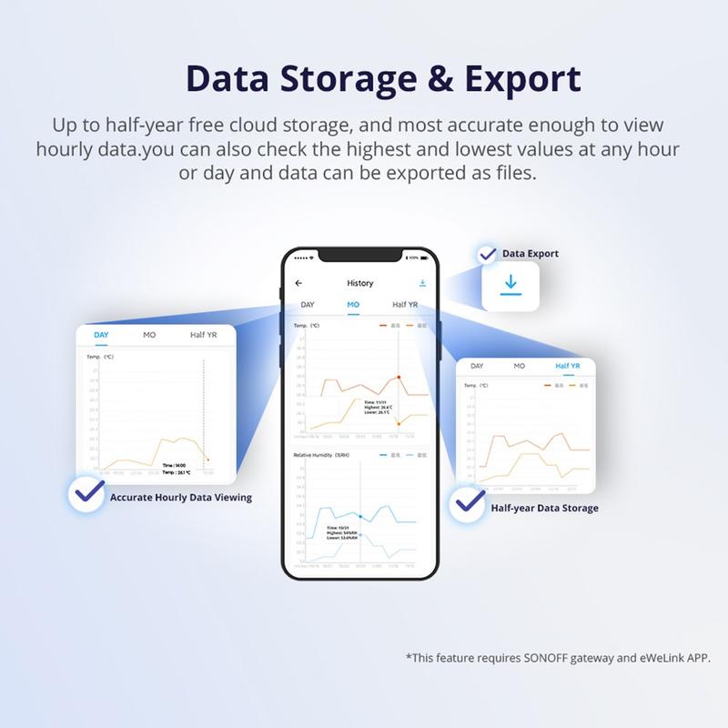 - Free cloud data storage up to 6 months + view hourly trends, highs/lows, and export data