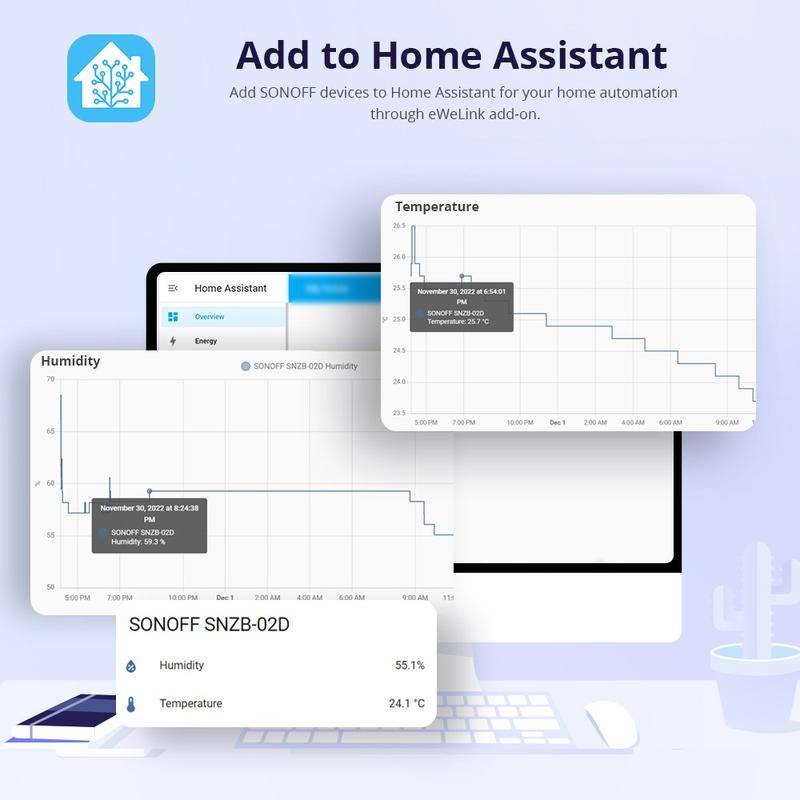 Keep your indoor climate under control with the SONOFF SNZB-02D. This ZigBee 3.0 temperature and humidity sensor shows live readings on its large LCD screen while also sending updates to your smartphone via the app. Set your preferred comfort range and get instant alerts when conditions change-perfect for creating a healthier, more comfortable home environment.