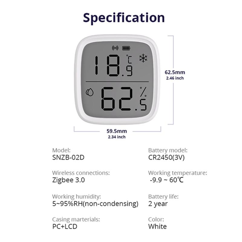 Sonoff SNZB-02D ZigBee 3.0 Smart Temperature and Humidity Sensor with LCD Display - CR2450 Included