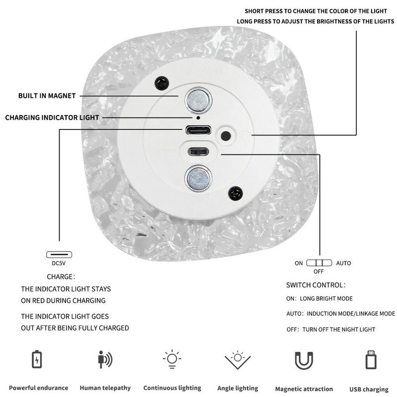 This motion sensor light is a practical solution for adding automatic lighting without installing wired fixtures. Its rechargeable battery, magnetic mounting, and adjustable light color make it versatile for many areas of the home. The soft ambient lighting helps create a comfortable environment while still providing enough visibility for nighttime movement.