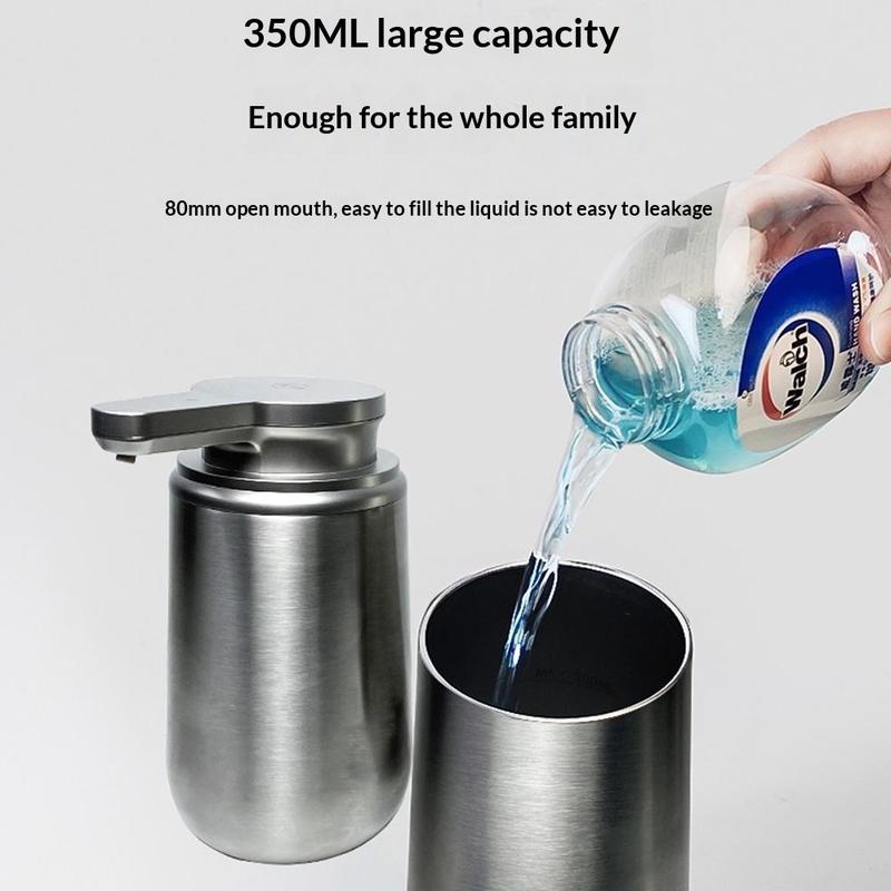 • Stainless Steel Automatic Soap Dispenser 350ml - Touchless Sensor Hand Sanitizer for Kitchen and Bathroom