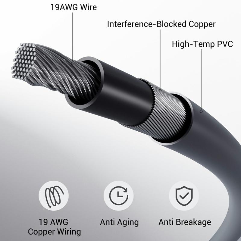 - 19AWG thick copper wire for low resistance and efficient current flow