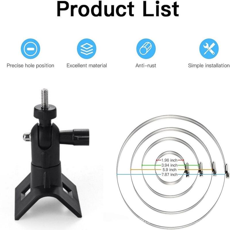 The 360-degree rotatable CCTV camera pole mount bracket is designed to provide secure and adjustable mounting for surveillance cameras in a wide range of environments. With a universal clamp design and full-angle adjustment, it allows precise camera positioning without the need for wall drilling.