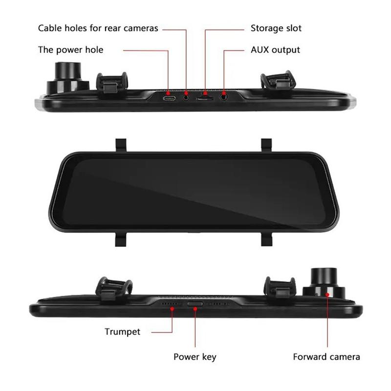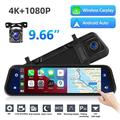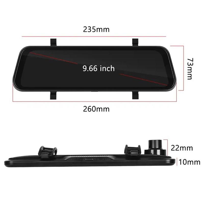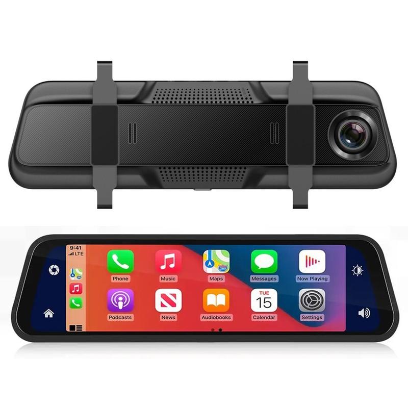 904 9.66" Touchscreen Dash Cam with CarPlay - Full-Screen Streaming Rearview Mirror 4K and 1080P Dual Lens DVR