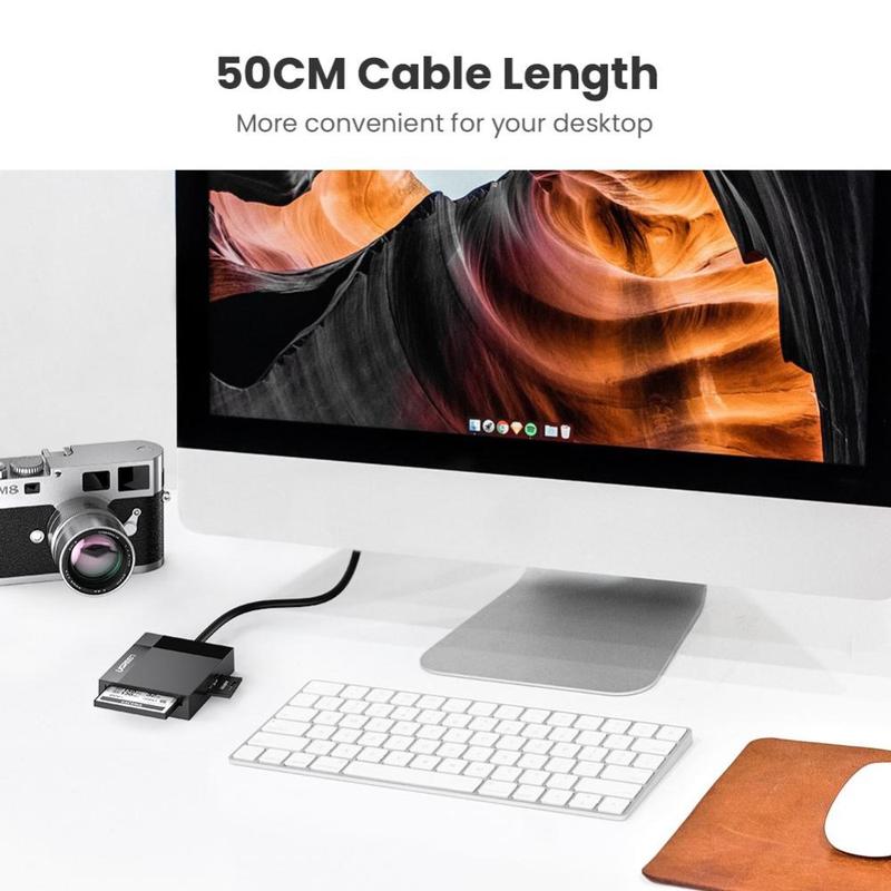 Transfer photos and videos quickly and easily with the UGREEN 4-in-1 USB 3.0 memory card reader. Designed for creators and everyday users, it supports SD, TF (microSD), CF, and MS cards in one compact adapter. With USB 3.0 speeds up to 5 Gbps and the ability to read up to four cards at the same time, it saves time when you are moving files from multiple cameras, recorders, or storage cards. A durable 50 cm shielded cable helps reduce strain on your computer USB port and keeps your setup tidy and reliable.
