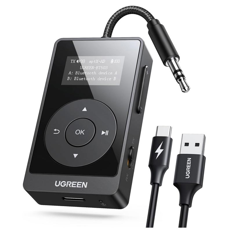 Ugreen BT503 2-in-1 Bluetooth 5.3 Transmitter and Receiver - aptX Adaptive/HD (TX), LED Display, Up to 32h Battery, 3.5mm AUX, Dual Headphone Support