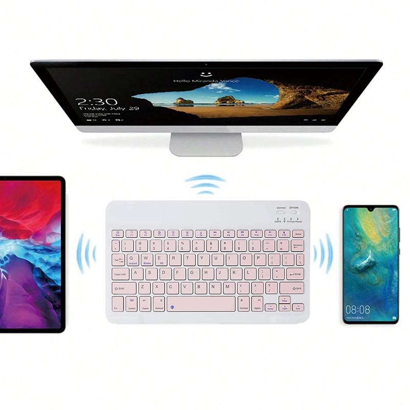 Ultra-Thin Quiet Bluetooth Keyboard for PC, Tablet, iPad, Phone, TV - Pink