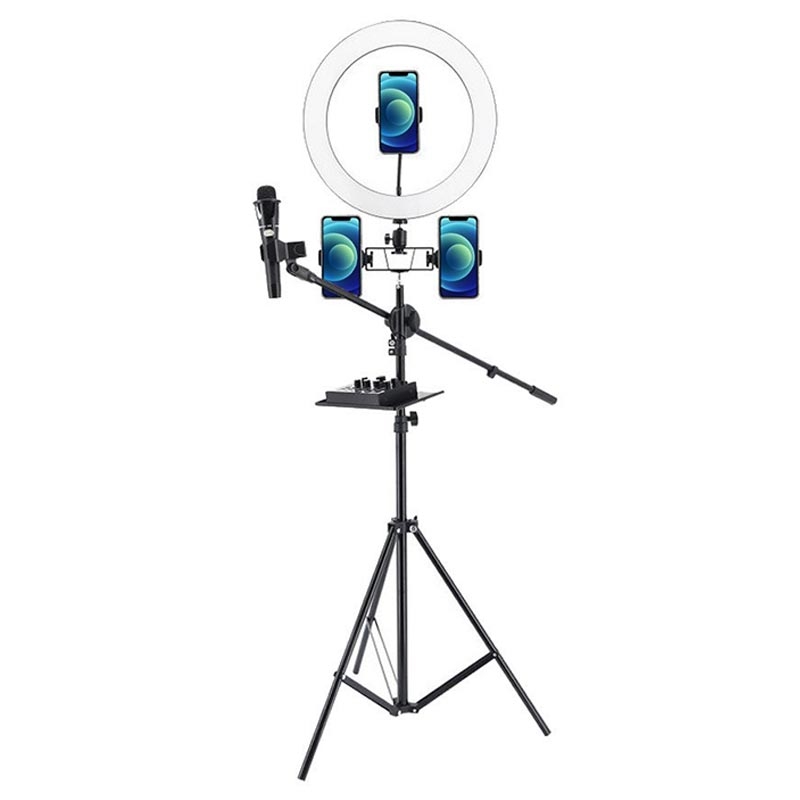 UN-700 10'' LED Ring Light with Tripod Stand Sound Card Tray and 3 Phone Holders for Selfie YouTube Video Photography Makeup