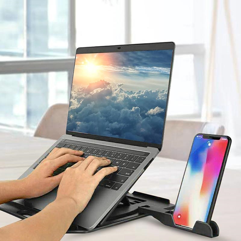360-degree Universal Rotary Laptop Stand makes your work from home or office much easier. This stand can rotate 360 degrees so you can share your desktop with others. Also, it has an integrated phone holder to keep both of your devices in one place.