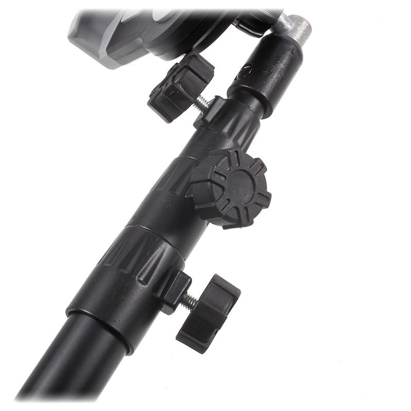 The tripod has a maximum height of around 140cm, with 4 section tubes, and a rotating head, allowing for easy height and angle of view adjustments. It can hold tablets that are within 18.2 - 29cm in width and it's great for everyday activities. It's a great tripod stand for the iPad, Samsung, and other tablets that range from 7 to 11" in screen size.