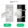 The CCTV camera pole clamp mount bracket is designed to provide a stable and adaptable mounting solution for security cameras in a wide range of environments. With support for wall, corner and pole installation, it allows flexible placement to achieve optimal surveillance coverage.