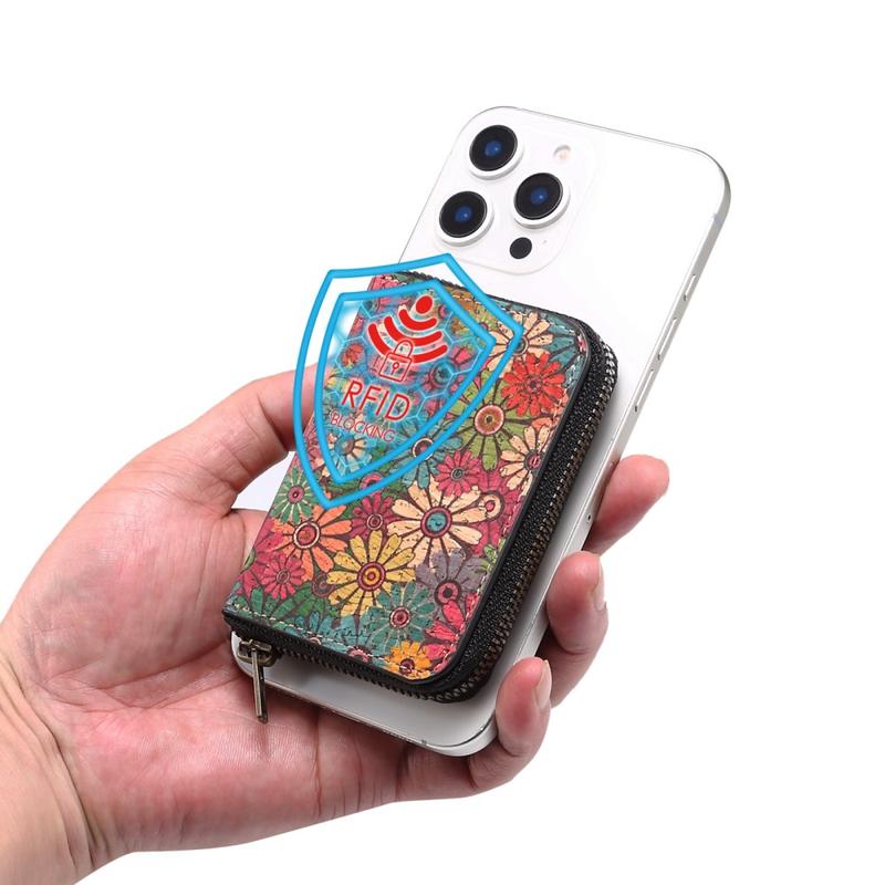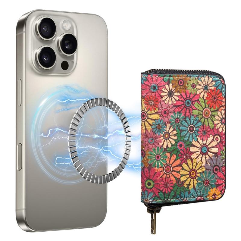 V16 Magnetic Card Holder with Zipper - Floral Pattern Wallet, MagSafe Compatible