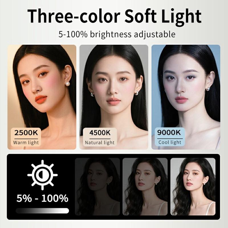 Adjust the light from 2500K warm tones to 9000K cool daylight to match any shooting environment. Perfect for live streaming, product photography, portraits and conference calls.