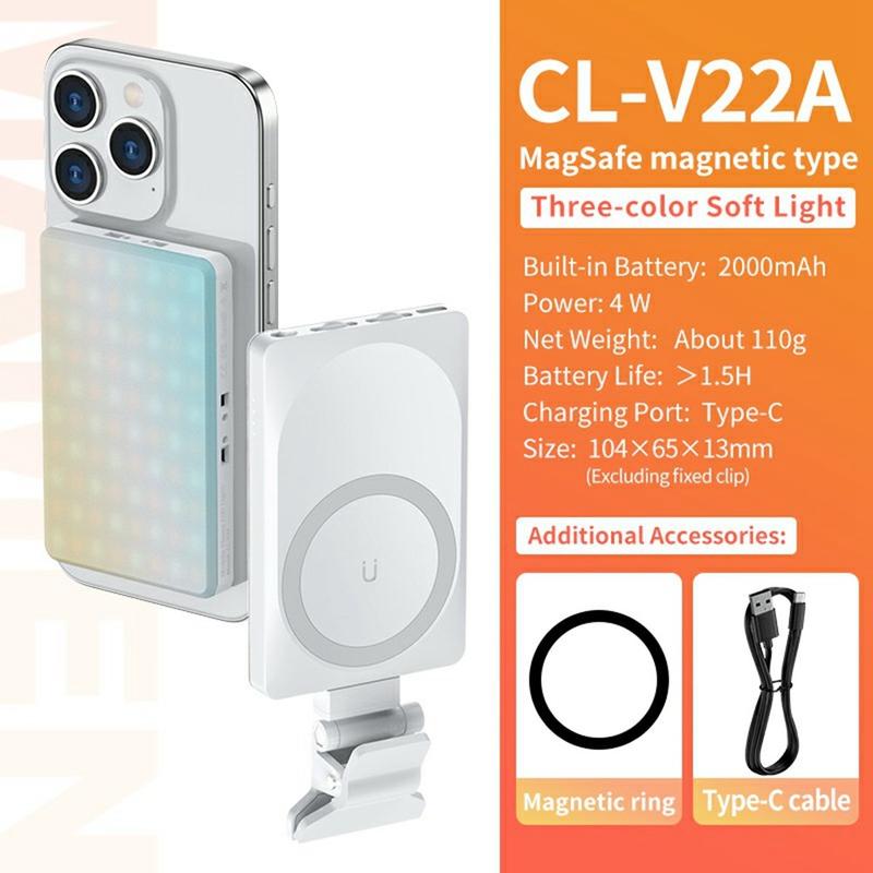 V22A 4W Portable Magnetic LED Fill Light - Pocket-Sized Type-C Rechargeable Camera Light for Phone & Live Streaming
