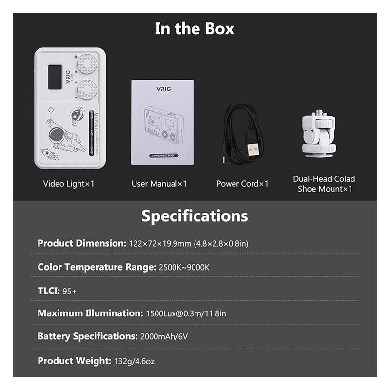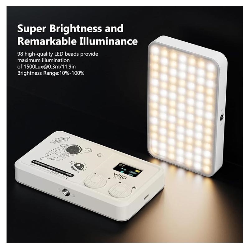 The VRIG FD-98 LED Video Light is designed for creators who need studio-quality illumination in a portable size. Featuring 98 high-CRI LED beads, it delivers bright, soft and natural lighting for photography, videography, content creation and livestreaming. Whether indoors or on the move, this palm-sized fill light ensures consistent professional results.