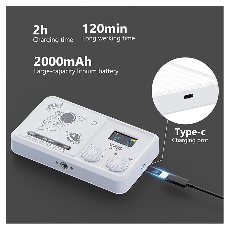 The VRIG FD-98 offers professional lighting quality, full color-temperature control, long battery life and portability in one compact device. It's perfect for creators who want reliable, high-quality illumination without carrying heavy equipment. The combination of CRI 95+, an OLED display and stepless controls gives you creative flexibility usually found in much larger lights.