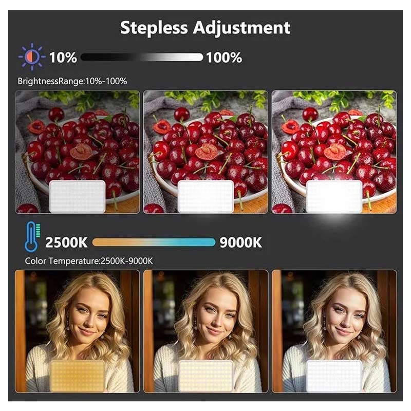 - Adjustable color temperature helps match natural light, tungsten light or studio setups