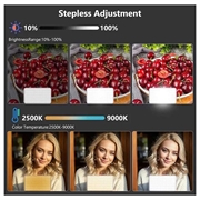 With stepless adjustment between warm 2500K and cool 9000K, you can create precise lighting atmospheres for interviews, portraits, product shots or cinematic visuals. The wide temperature range allows seamless adaptation to any environment.