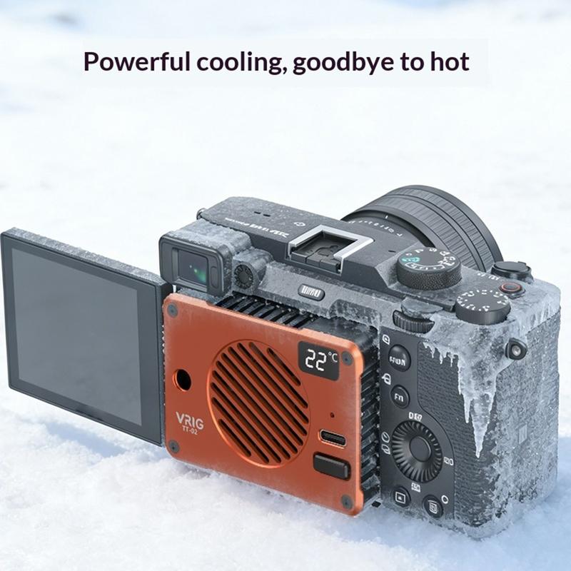 The magnetic attachment allows fast installation on compatible devices, while the compact aluminum body ensures durability and efficient heat dissipation. With a built-in digital display and intelligent temperature control system, the cooler automatically maintains a safe operating range to prevent condensation and improve overall cooling efficiency. Its quiet operation makes it suitable for video recording environments where background noise should remain minimal.