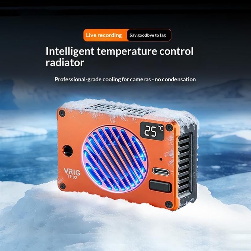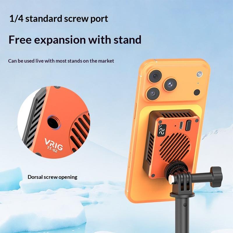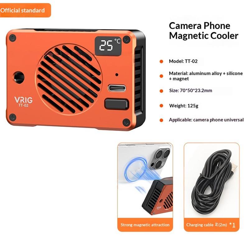 Keep your smartphone or camera cool during intensive shooting and recording with the VRIG TT-02 magnetic cooling fan. Designed for mobile videography, streaming, and gaming, this compact cooler uses TEC semiconductor cooling technology combined with a high-speed fan to help quickly reduce device temperature and maintain stable performance.