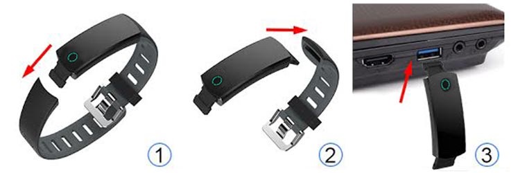 You don't need any additional cables to charge your C20 activity tracker. All you have to do is take off the strap and expose the USB port. Simply plug it into power bank, wall adapter, computer, laptop, or other USB charging port.