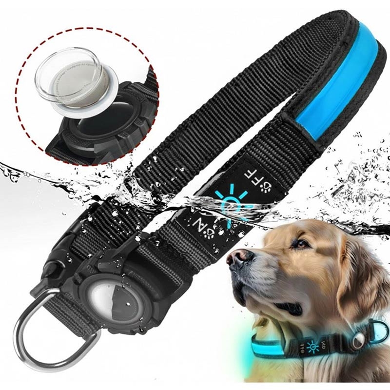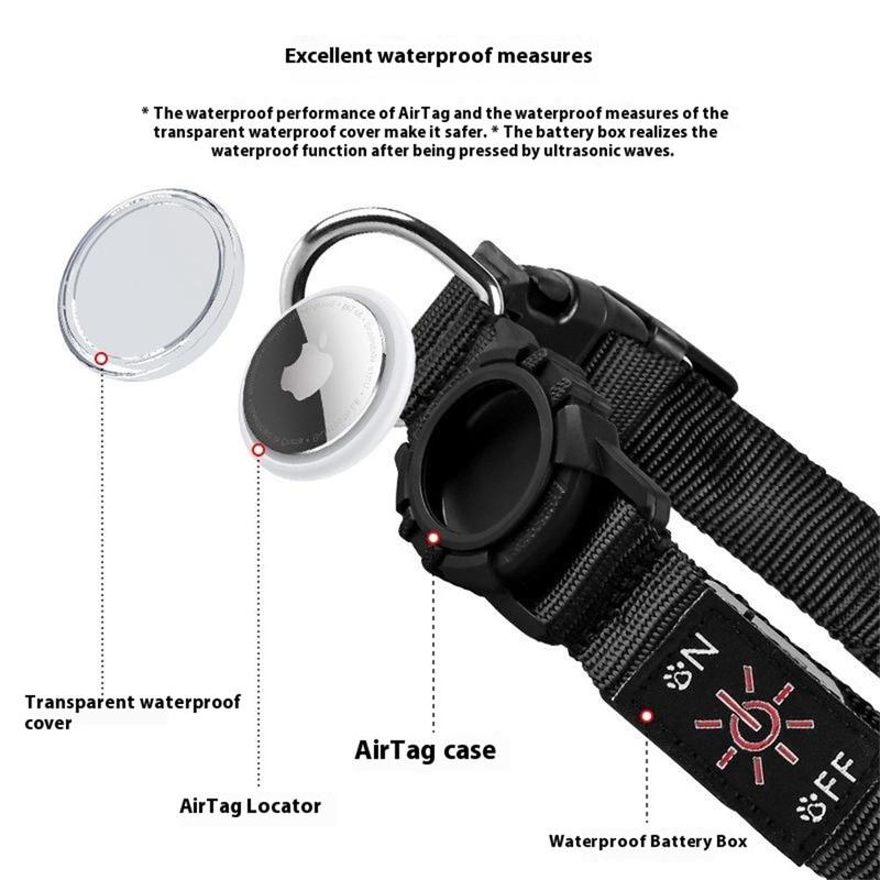 • LED Dog Collar with Case for Apple AirTag 1/2 - Waterproof Anti-Lost Collar with Rechargeable Light