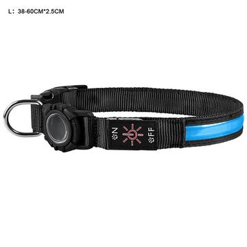 Waterproof LED Dog Collar with Apple AirTag 1/2 Holder - Large 38-60cm - Blue