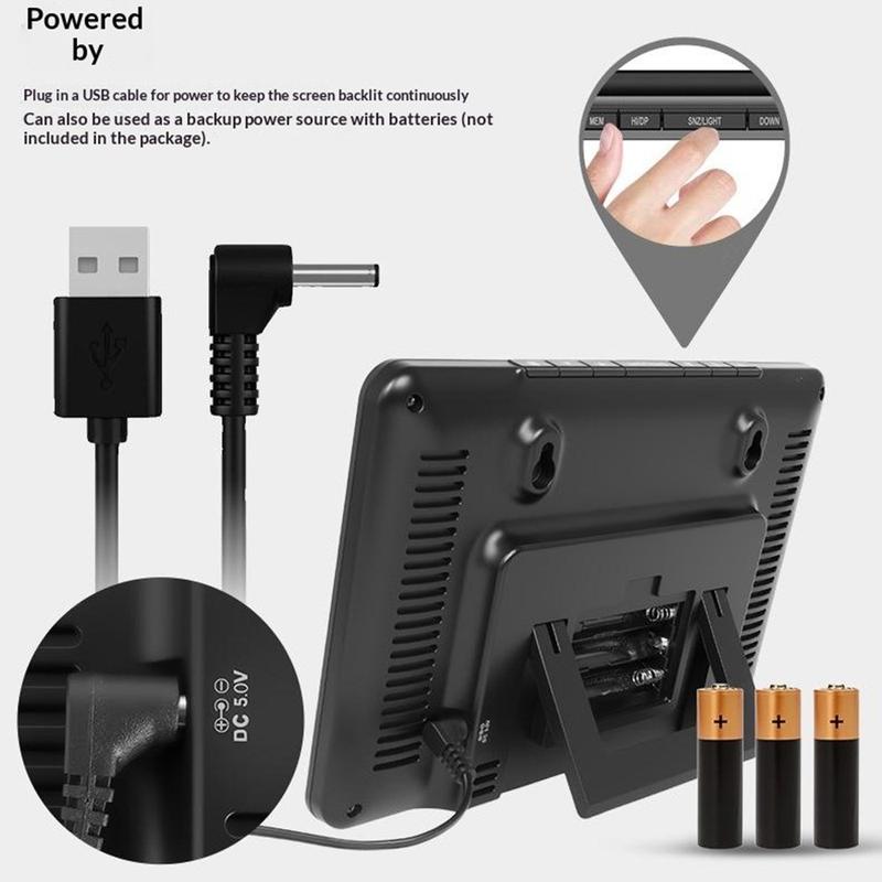 The weather station can be powered through USB for continuous display use and backlight operation, while battery backup helps keep it functional during power interruptions. This dual power setup adds reliability and flexibility, especially for users who want a stable display with added backup support.