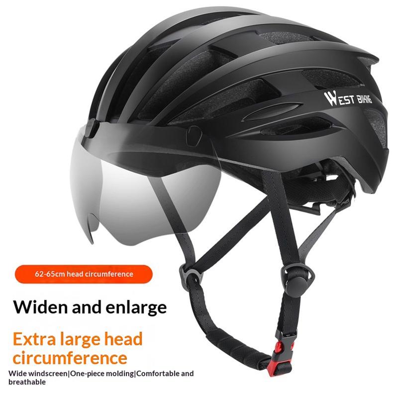 Ride with more confidence and comfort in the West Biking YP0708100 cycling helmet, designed especially for riders who need a larger fit. Built for head circumferences of 62-65 cm, this lightweight bike helmet combines reliable impact protection, strong ventilation, and practical eye shielding in one streamlined design. The one-piece molded PC shell and EPS foam construction help absorb shocks effectively, while the integrated magnetic goggles add extra protection against wind, dust, and road debris.