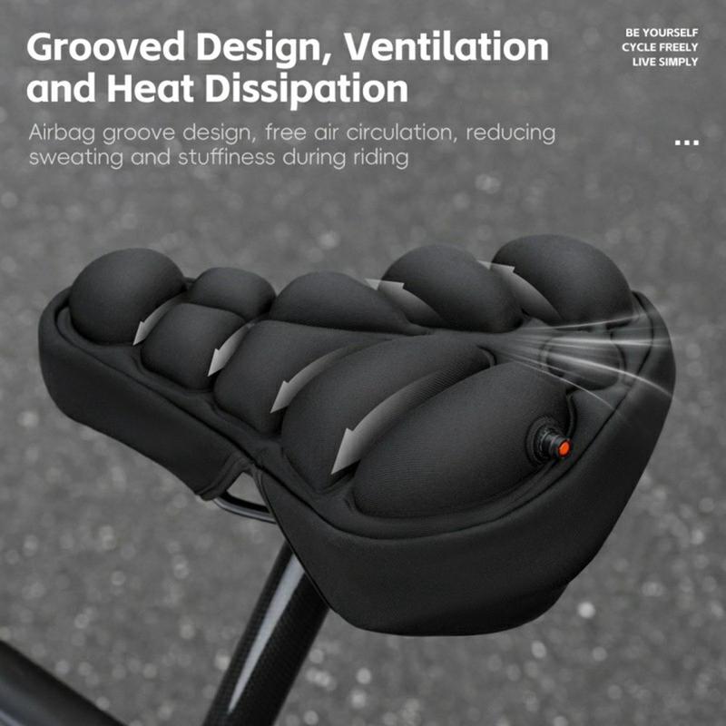 Inflatable air cushions are popular because air naturally adapts to your shape, helping spread pressure more evenly than standard foam. Adjustable valves allow riders to change firmness depending on ride length and terrain. Grooved ventilation channels are designed to improve airflow, which can make a noticeable difference on longer rides and during hotter conditions.