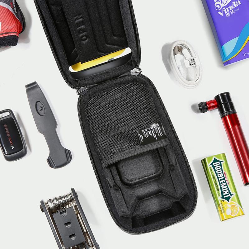 Wild Man E16 Bike Stem Storage Bag - Hard EVA Bicycle Pouch with TPU Touch Screen, Waterproof, Reflective Logo