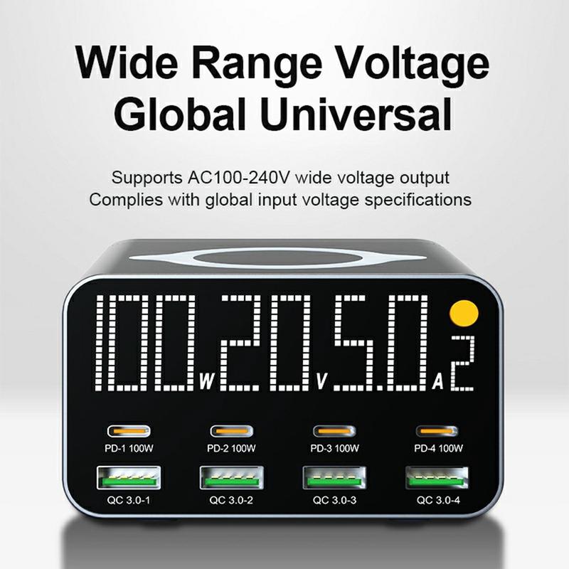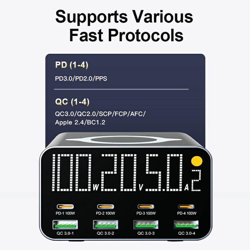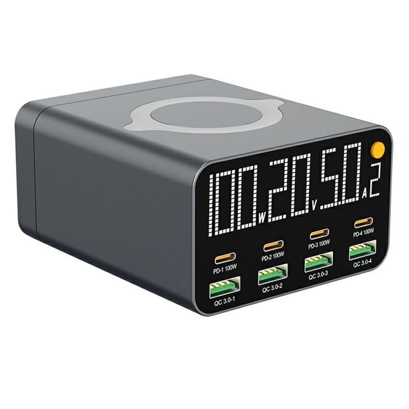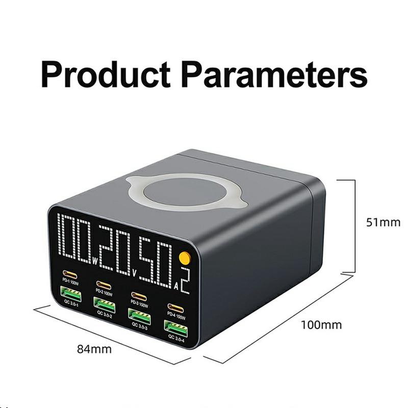 WLX-M1 120W Desktop Charging Station - 8-Port GaN USB-C Fast Charger with Wireless Charging (EU Plug)