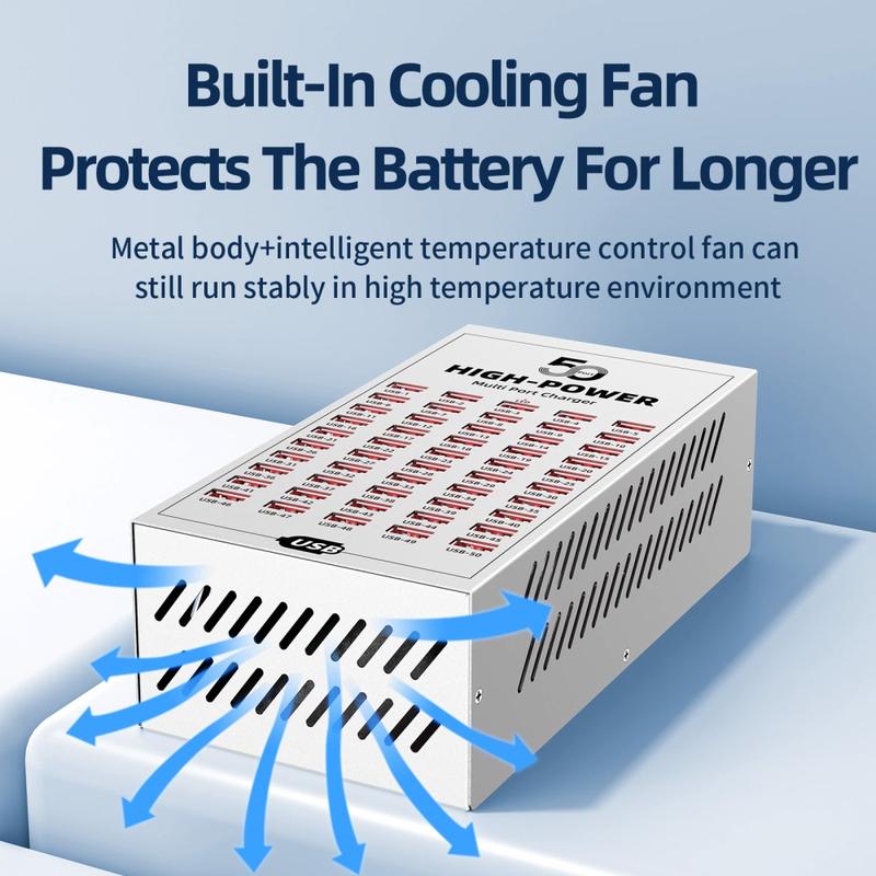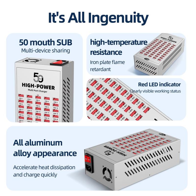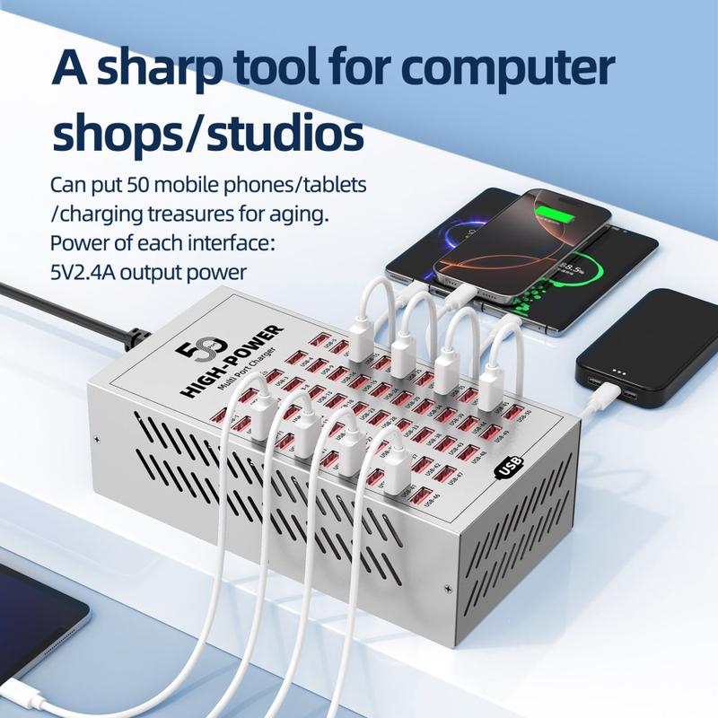 - 50 USB ports for simultaneous multi-device charging in commercial and industrial settings