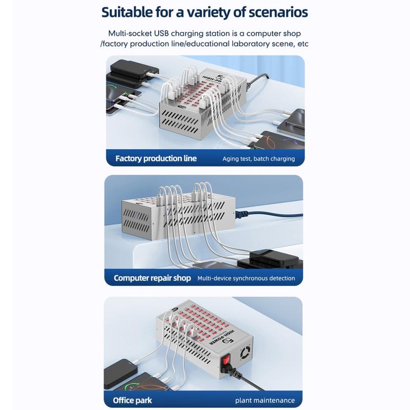 - Workstations and repair shops: charge customer phones and test devices in batches
