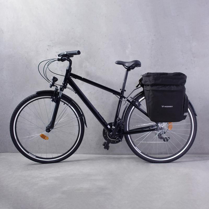The Wozinsky WBB13BK bike rack bag is made for cyclists who need serious storage without wearing a bulky backpack. With an impressive 60-liter capacity, this rear rack bag easily fits clothing, food, drinks, tools, and travel essentials for longer rides or weekend trips. Built from durable, water-repellent polyester and supplied with a full rain cover, it protects your gear from rain, splashes, and changing weather. The bag mounts securely to the bike rack using eight strong straps, offering stability even on uneven roads, while reflective elements improve visibility during low-light rides.