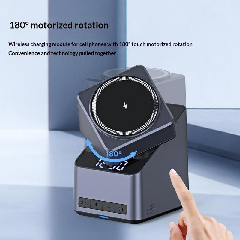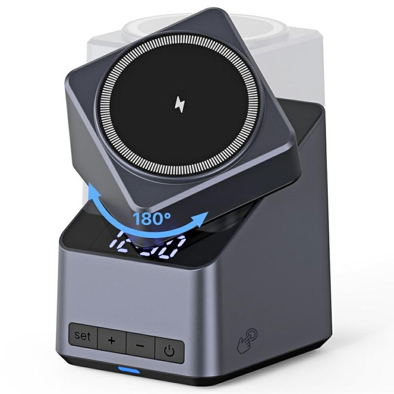 X11 Qi2 15W 3-in-1 Wireless Charger Stand with LED Clock - Rotating Magnetic Charging Station for Phone, Watch and Earbuds