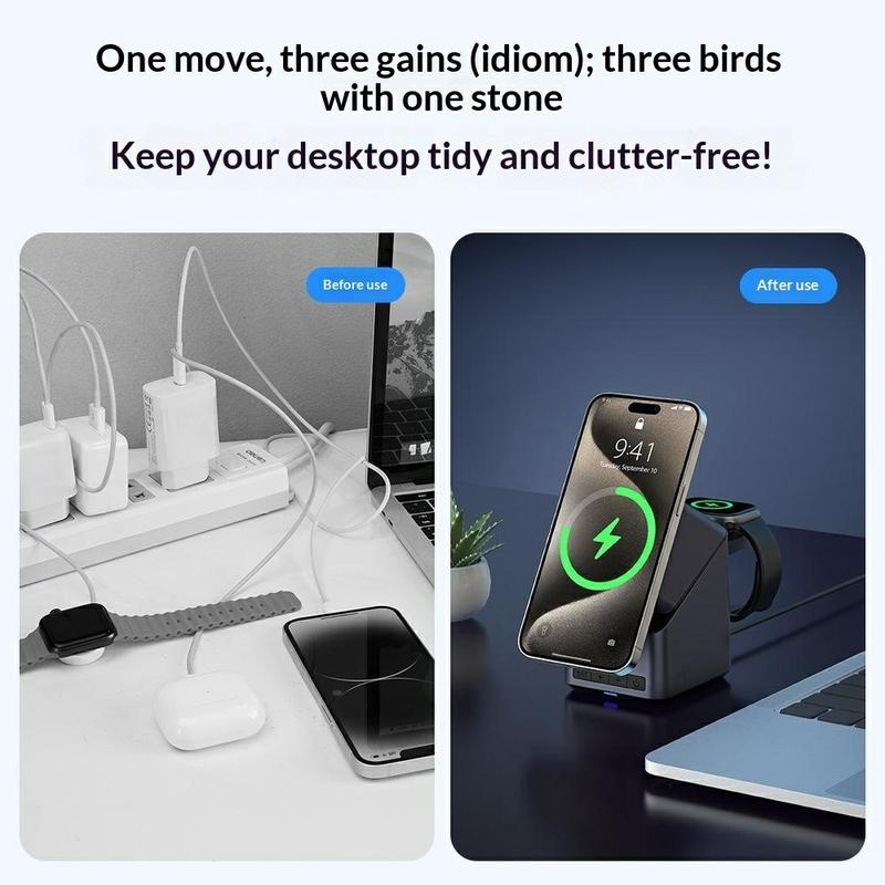 - 3-in-1 charging for phone, smartwatch, and earbuds