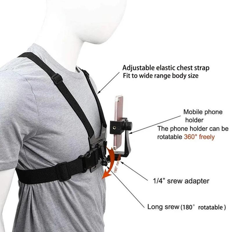 XD-27 Action Camera Chest Mount with Phone Holder - Adjustable Nylon Chest Belt for GoPro and Smartphones
