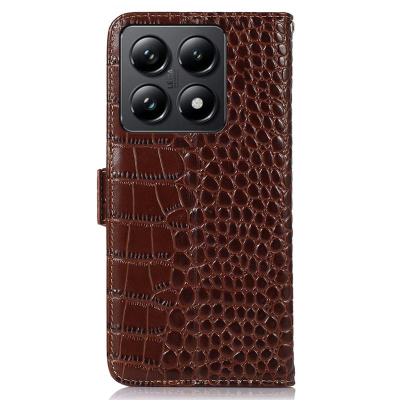 Xiaomi 14T Pro Crocodile Series Wallet Leather Case with RFID - Brown