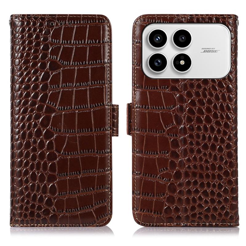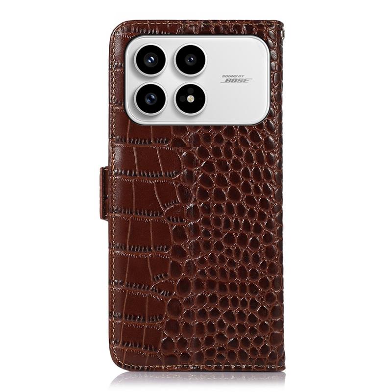 Xiaomi Redmi K90/Poco F8 Pro Crocodile Series Wallet Leather Case with RFID - Brown